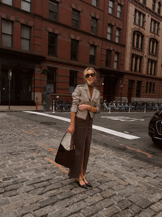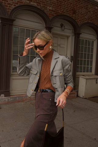 As soon as September 1 hits, I'm pulling out all my textures and rich earth tones (though tbh that's me year-round.) I ordered this jacket for NY - love how it's just a little bit uptown with a definite edge. I've worn this chocolate skirt 3x in the last week (true story) and I can already tell it's going to be a staple in my wardrobe this season. The combo of cable knit and tweed feels so fresh—rich enough for fall, but still light enough when the city is still warm.